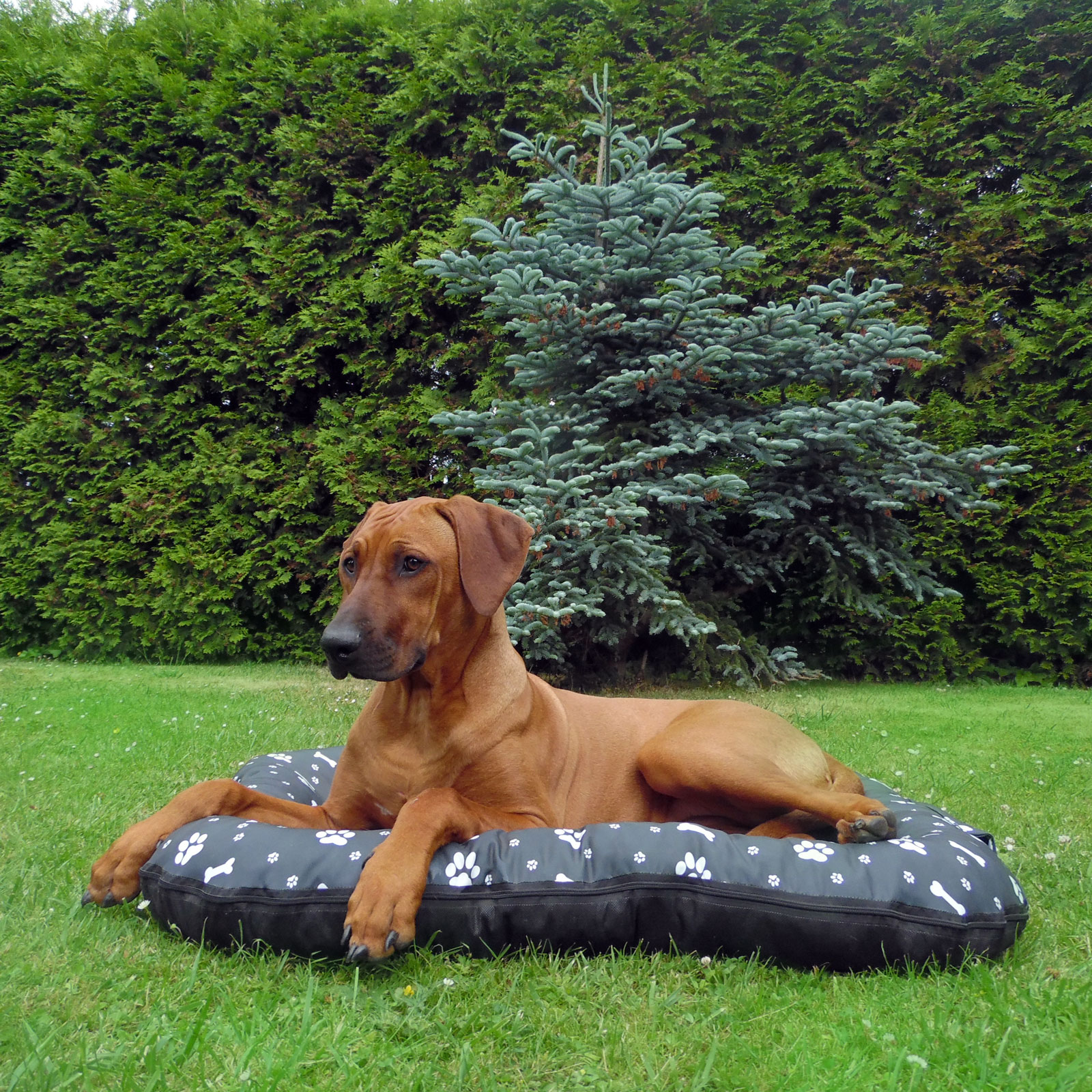 Die Hundebetten sind stark belastbar, Wasserfest und können bei leichter Verunreinigung mit einem feuchten Tuch gereinigt werden.