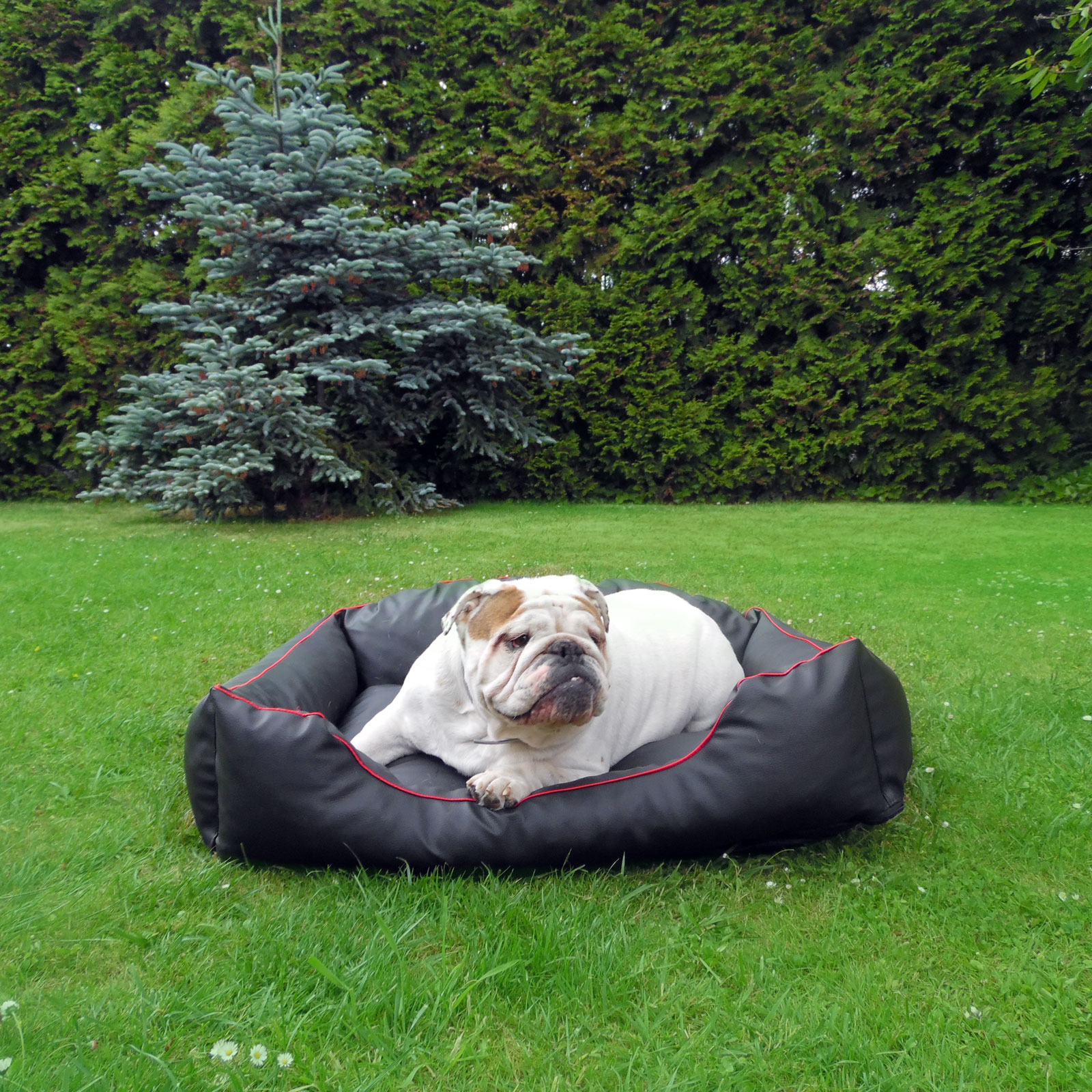Die Hundebetten aus Kunstleder sind pflegeleicht und schnell abwaschbar. Auch gängige Flächendesinfektionsmittel kann das Kunstleder standhalten. Das Kunstleder kann einfach mit einem feuchten Tuch abgewaschen werden.